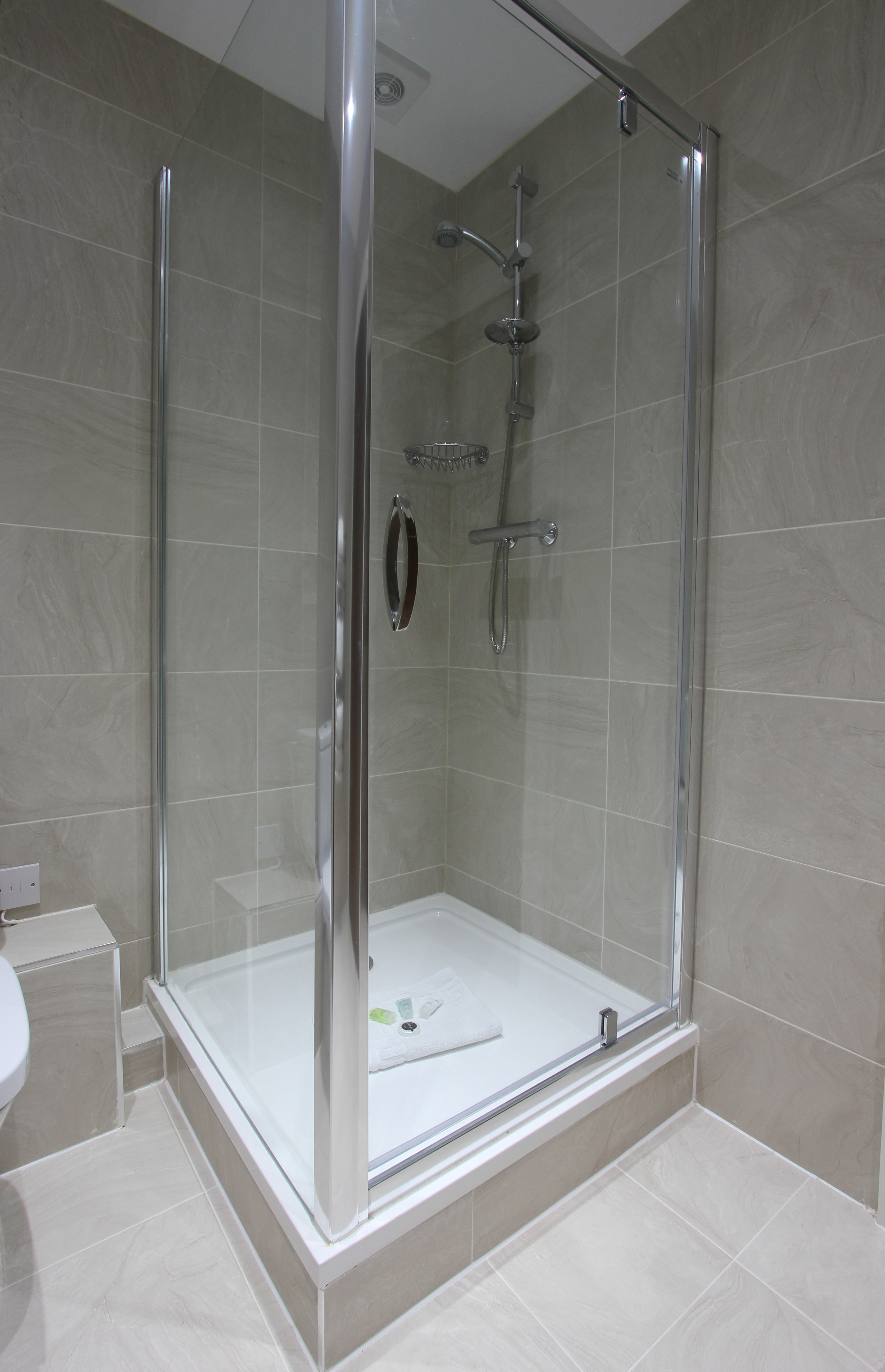 The spacious bedroom is modern with ample wardrobe space. The shower rooms are bright and modern.