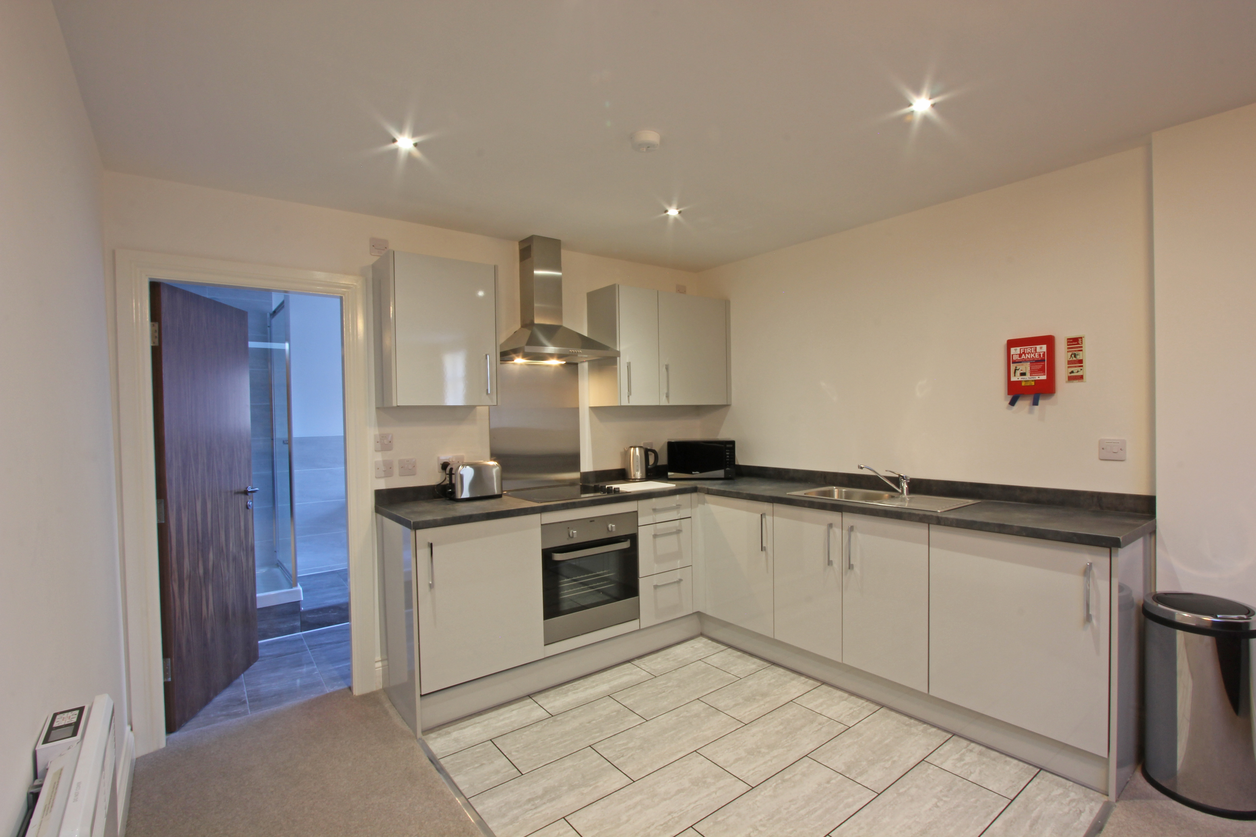 Luxury fully furnished Loft Apartment. The loft apartment offers open-plan Living/Dining area with flat-screen TV, luxurious Italian leather sofa and stylish dining furniture. The loft apartment has a fully equipped Kitchen with cooker, hob, microwave, kettle and toaster. Integrated fridge and washer/dryer are also featured within the bright contemporary kitchen.